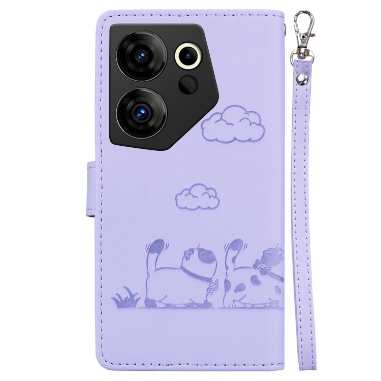 Funda de Cuero Rfid para Tecno Camon 20 Premier 5G con Diseño de Gatos (Morado)