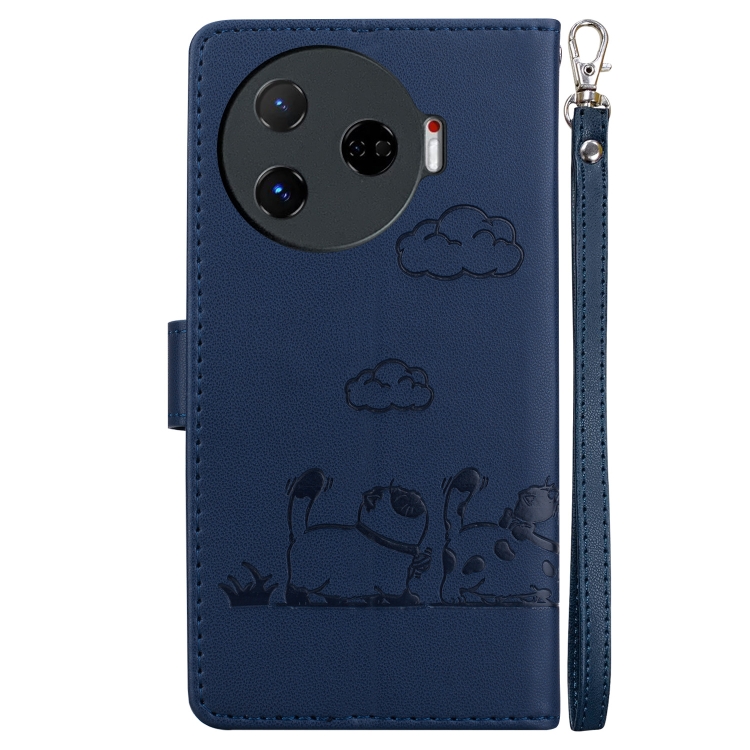 Funda de Cuero RFID para Tecno Camon 30 Pro 5G con Diseño de Gatos (Azul)