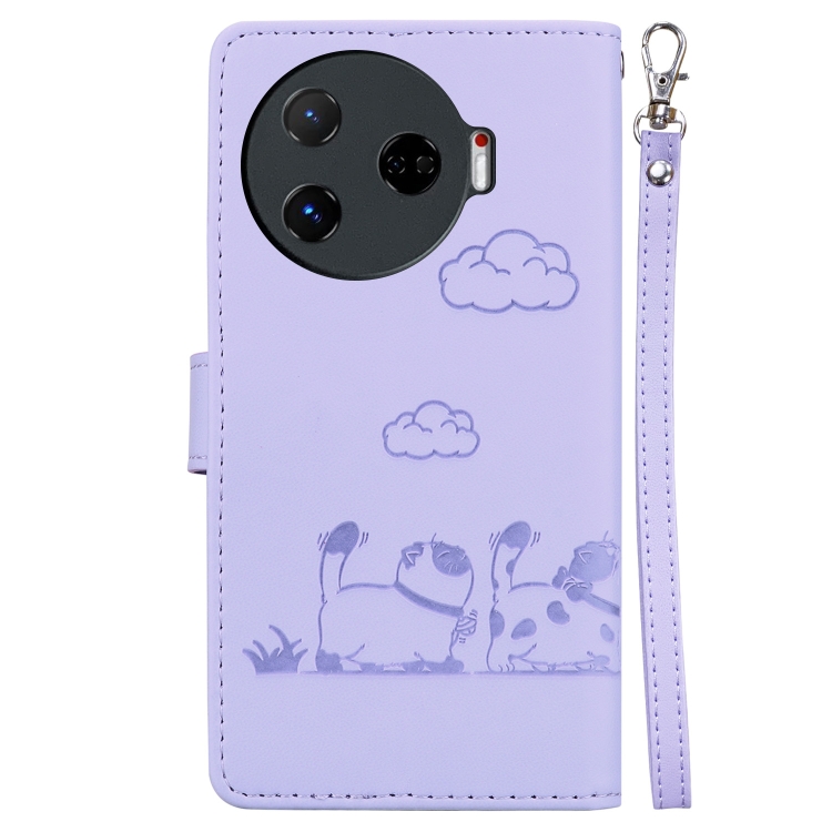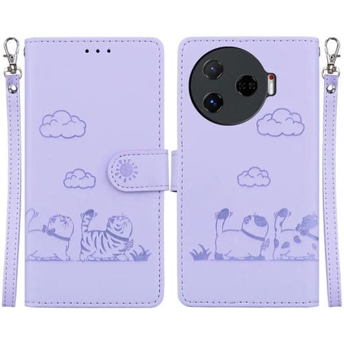 Funda de Cuero Rfid para Tecno Camon 30 Pro 5G con Diseño de Gatos (Morado)