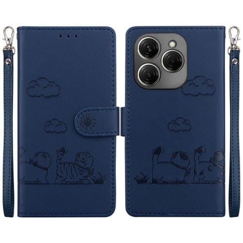 Funda de Cuero Rfid para Tecno Spark 20 Pro con Diseño de Gatos (Azul)