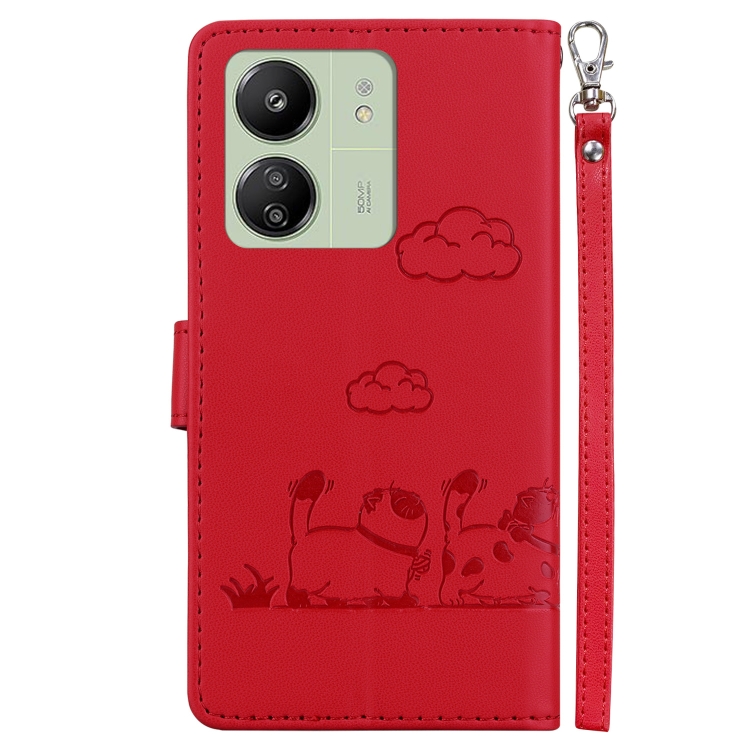 Funda de Cuero Rfid con Diseño de Gatos para Xiaomi Poco C65 4G (Roja)