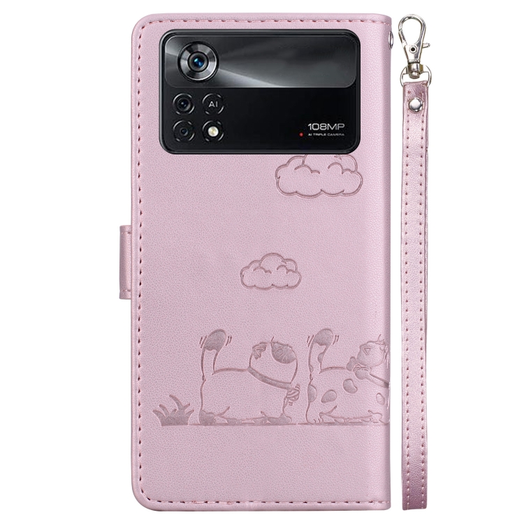 Funda de Cuero Rfid con Diseño de Gatos para Xiaomi Poco X4 Pro 5G (Oro Rosa)