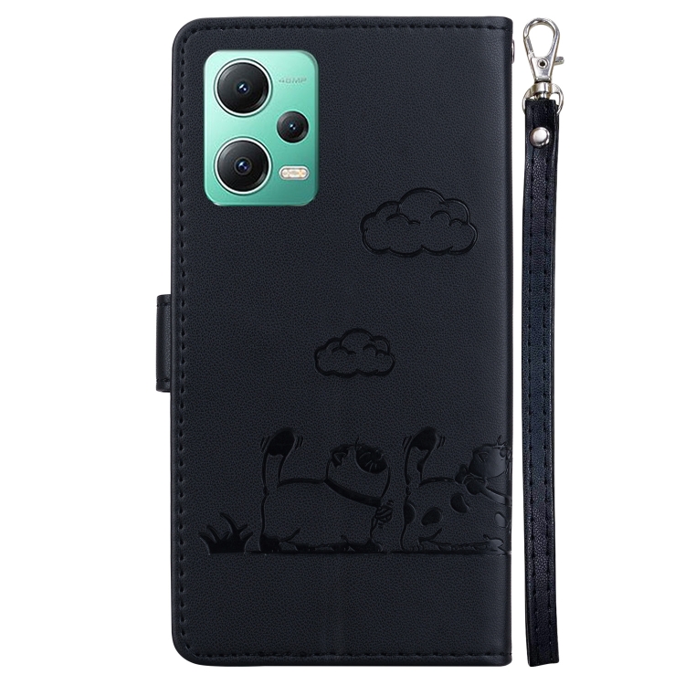 Funda de Cuero Rfid con Diseño de Gatos para Xiaomi Poco X5 (Negra)
