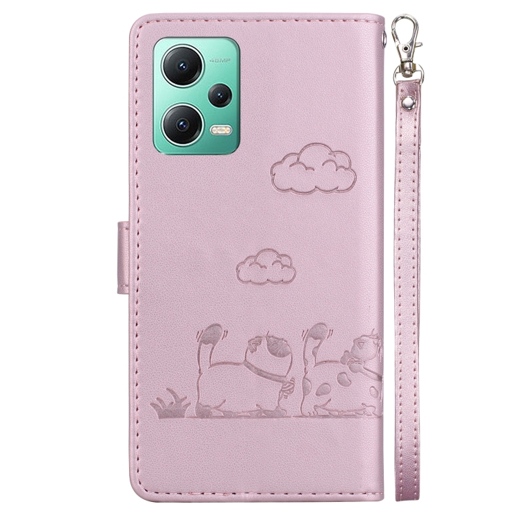 Funda de Cuero Rfid con Diseño de Gatos para Xiaomi Poco X5 (Oro Rosa)