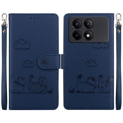 Funda de Cuero Rfid con Diseño de Gatos para Xiaomi Poco X6 Pro (Azul)