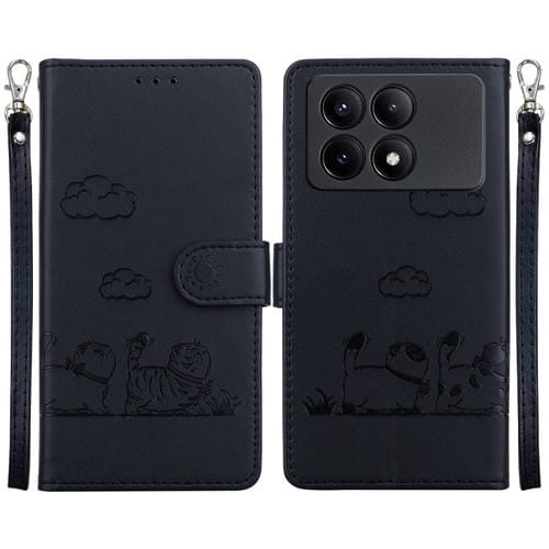 Funda de Cuero Rfid con Diseño de Gatos para Xiaomi Poco X6 Pro (Negra)