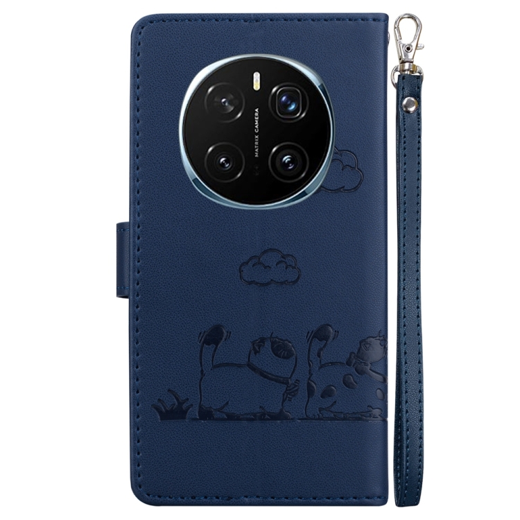 Funda de Cuero Rfid para Honor Magic7 Pro con Diseño de Gatos (Azul)