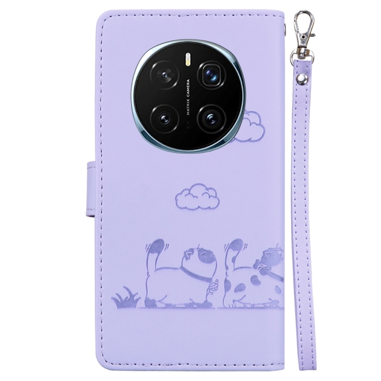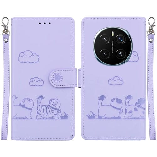 Funda de Cuero Rfid para Honor Magic7 Pro con Diseño de Gatos (Morada)