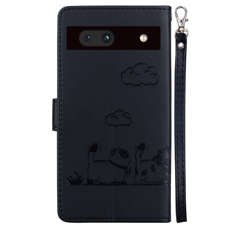 Funda de Cuero Rfid para Google Pixel 7A con Diseño de Gatos (Negra)