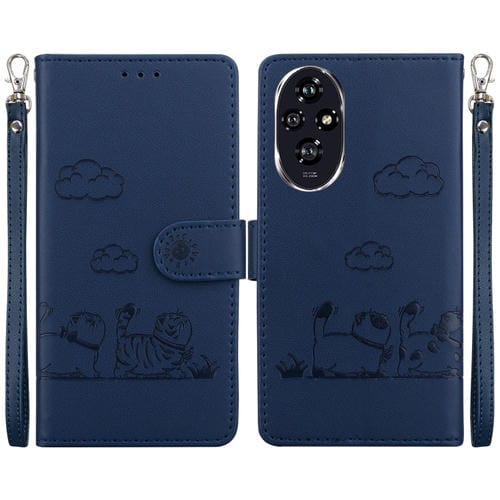 Funda de Cuero Rfid para Honor 200 5G con Diseño de Gatos (Azul)