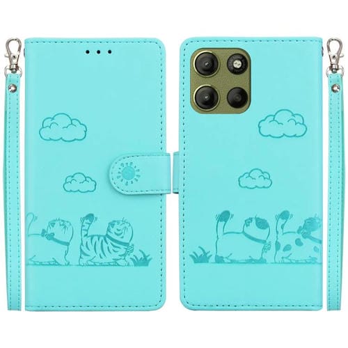 Funda de Cuero Rfid para Motorola Moto G15 con Diseño de Gatos (Verde)