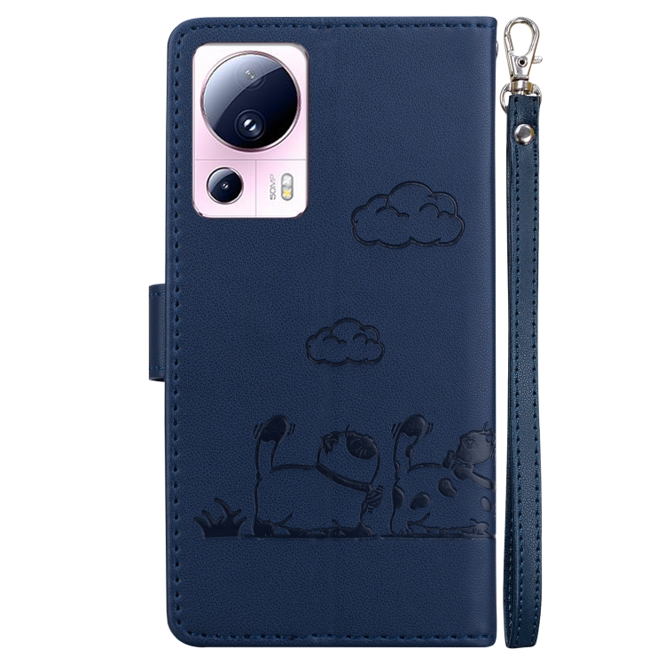 Funda de Cuero Rfid con Diseño de Gatos para Xiaomi 13 Lite/Civi 2 (Azul)