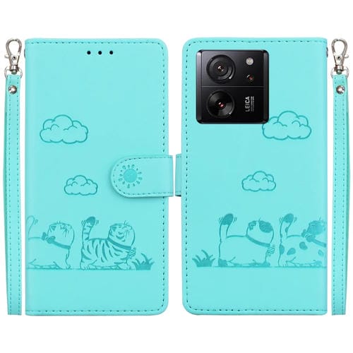 Funda de Cuero Rfid con Diseño de Gatos para Xiaomi 13T/13T Pro (Verde)
