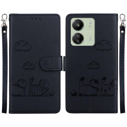 Funda de Cuero Rfid con Diseño de Gatos para Xiaomi Poco C65 4G (Negra)