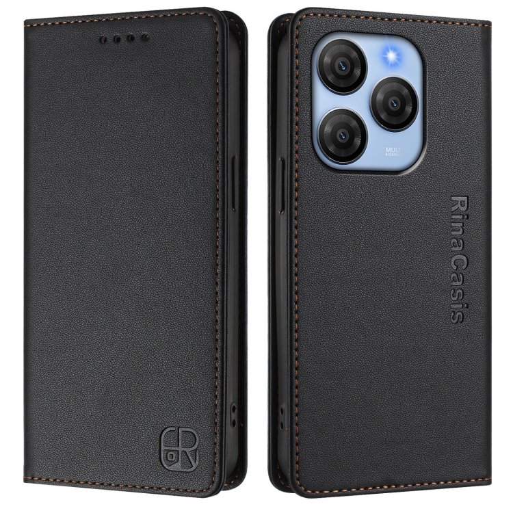 Funda de Cuero Rfid con Doble Pliegue y Succión Magnética para BlackView Shark 9 Rc01 (Negro)