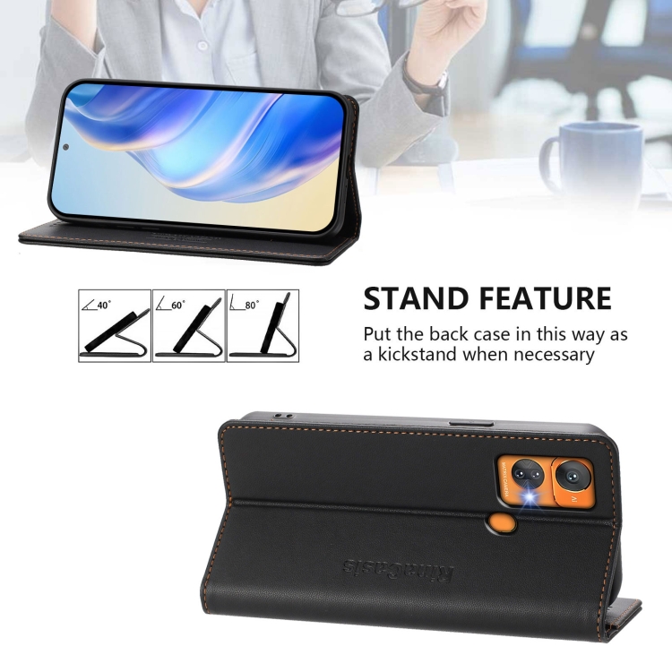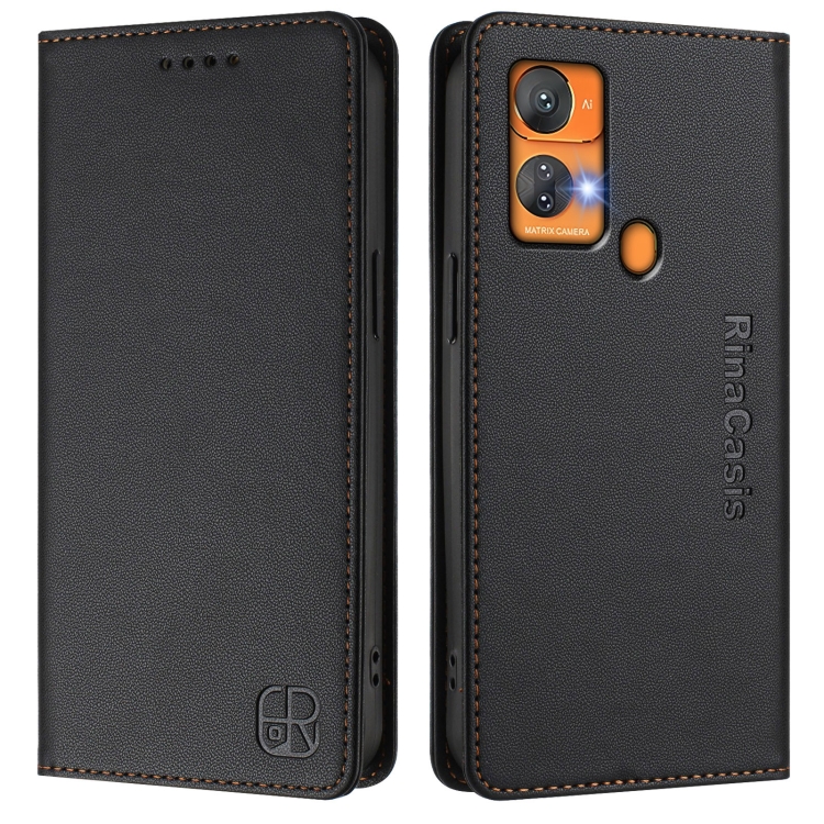 Funda de Cuero Rfid con Doble Pliegue y Succión Magnética para Oukitel C33 Rc01 (Negra)