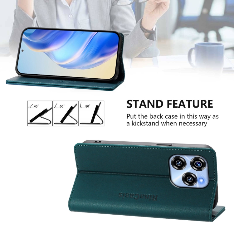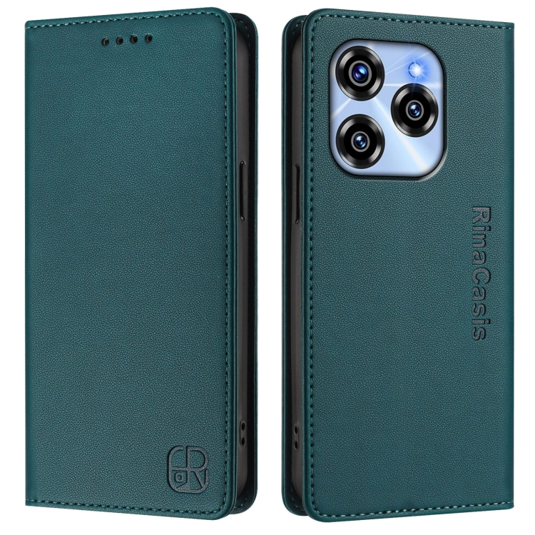 Funda de Cuero Rfid para Oukitel C50 Rc01 con Doble Pliegue y Succión Magnética (Verde Oscuro)