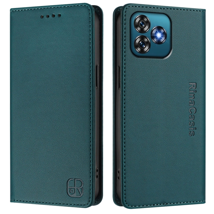 Funda de Cuero Rfid para Oukitel C53 Rc01 con Doble Pliegue y Succión Magnética (Verde Oscuro)