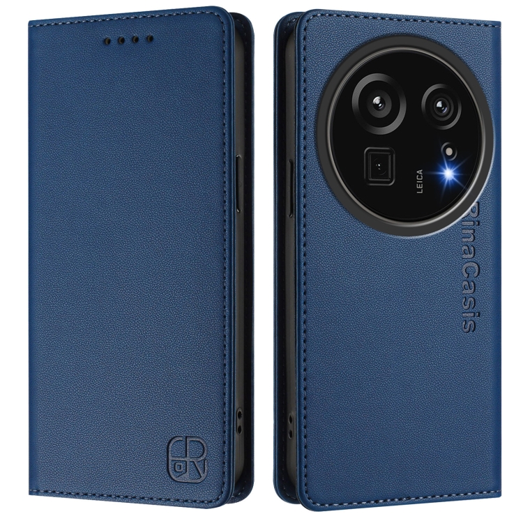 Funda de Cuero para Sharp Aquos R9 Pro Sh-54E Rc01 con Doble Pliegue y Succión Magnética Rfid (Azul Oscuro)