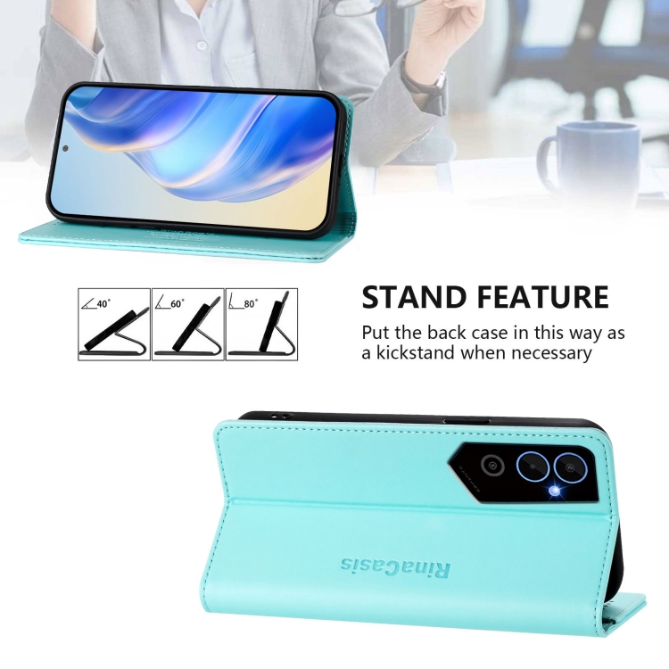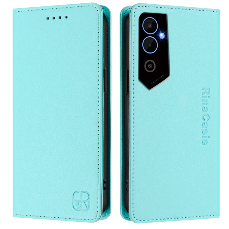 Funda de Cuero RFID con Doble Pliegue y Succión Magnética para Tecno Pova Neo 2 Rc01 (Verde Menta)