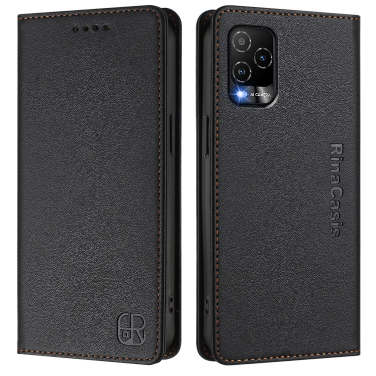 Funda de Cuero RFID con Doble Pliegue y Succión Magnética para Blu View 5 Pro RC01 (Negro)