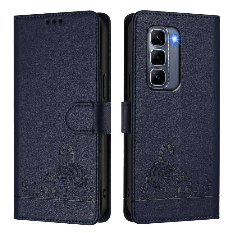 Funda de Cuero Rfid para Infinix Hot 50 Pro+ 4G con Estampado de Rata y Gato y Cordón (Azul)
