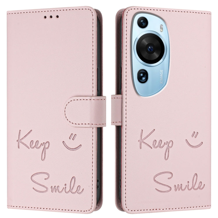 Funda de Cuero Rfid con Relieve Art Smile para Huawei P60 (Rosa)