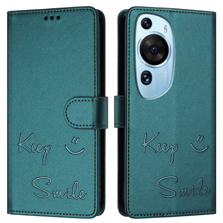 Funda de Cuero Rfid con Relieve Art Smile para Huawei P60 (Verde Pavo Real)