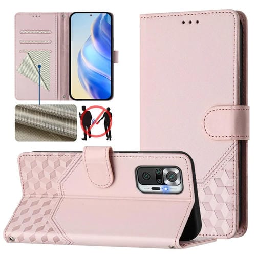 Funda de Cuero Rfid con Relieve de Panal para Redmi Note 10 Pro 4G/Note 10 Pro Max (Rosa)