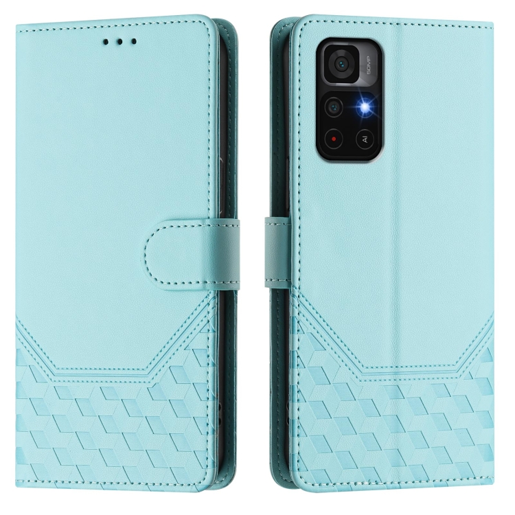 Funda de Cuero Rfid con Relieve de Panal para Redmi Note 11S 5G (Verde Menta)