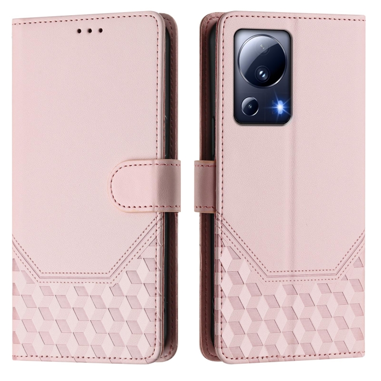 Funda de Cuero Rfid con Relieve de Panal para Xiaomi 13 Lite 5G/Civi 2 (Rosa)