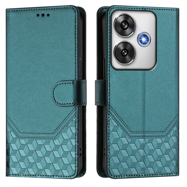 Funda de Cuero Rfid con Relieve de Panal para Xiaomi Poco F6 5G (Verde Pavo Real)