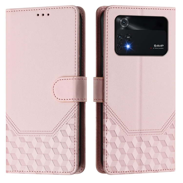 Funda de Cuero Rfid con Relieve de Panal para Xiaomi Poco M4 Pro 4G (Rosa)