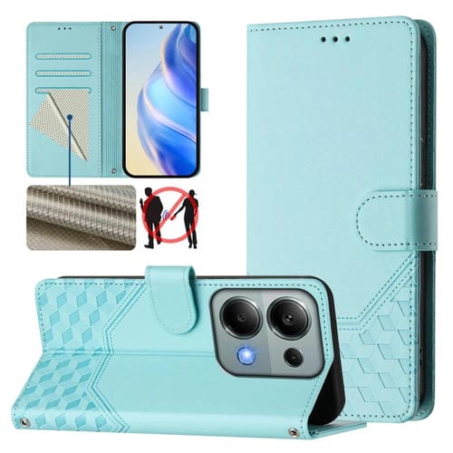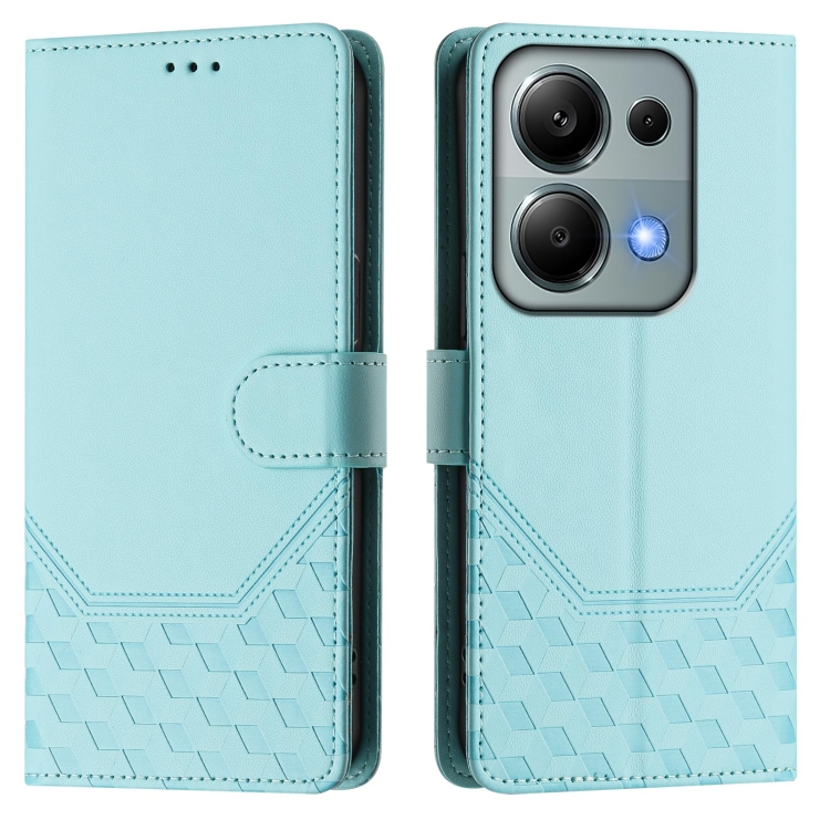 Funda de Cuero Rfid con Relieve de Panal para Xiaomi Poco M6 Pro 4G (Verde Menta)
