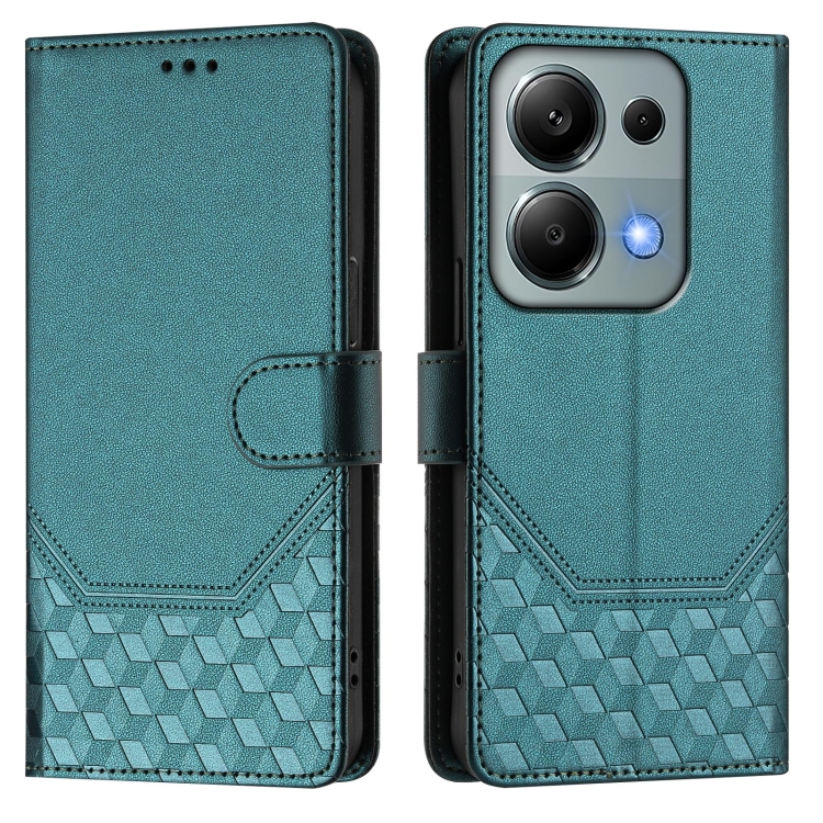 Funda de Cuero Rfid con Relieve de Panal para Xiaomi Poco M6 Pro 4G (Verde Pavo Real)