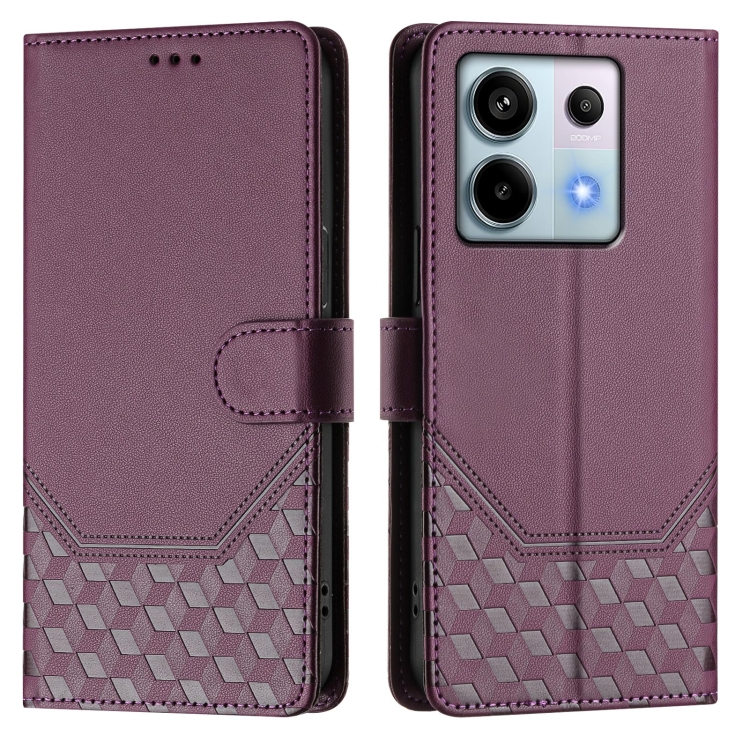 Funda de Cuero Rfid con Relieve de Panal para Xiaomi Poco X6 5G (Violeta)