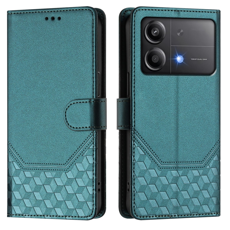 Funda de Cuero Rfid con Relieve de Panal para Xiaomi Poco X6 Neo 5G (Verde Pavo Real)