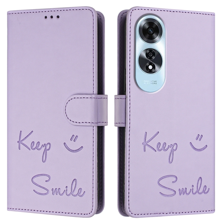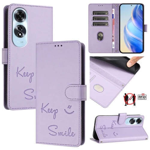 Funda de Cuero Rfid con Relieve de Sonrisa Global para Oppo A60 4G (Morado Claro)