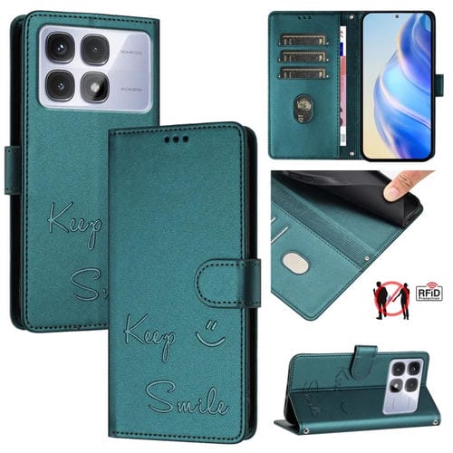 Funda de Cuero Rfid con Relieve de Sonrisa Global para Redmi K70 Ultra 5G (Verde Pavo Real)