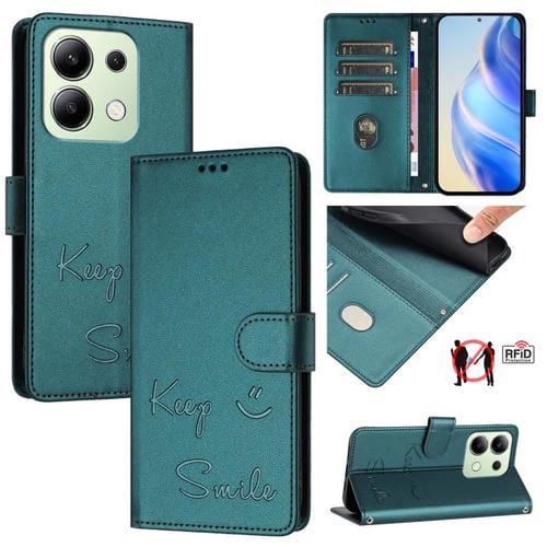 Funda de Cuero Rfid con Relieve de Sonrisa Global para Redmi Note 13 4G (Verde Pavo Real)
