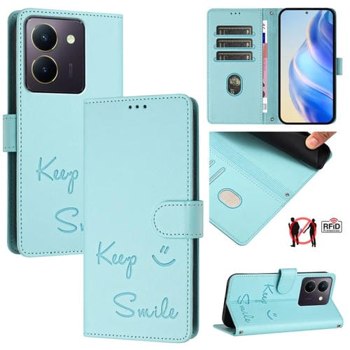 Funda de Cuero Rfid con Relieve de Sonrisa Global para Vivo Y36 4G (Verde Menta)
