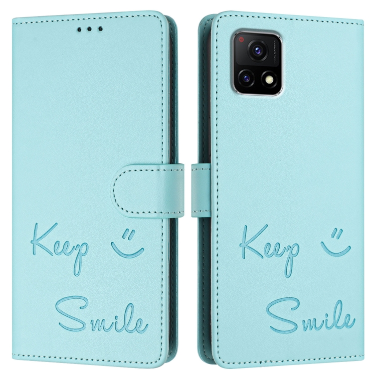 Funda de Cuero Rfid con Relieve de Sonrisa India para Vivo Y31S 5G/Y72 5G (Verde Menta)