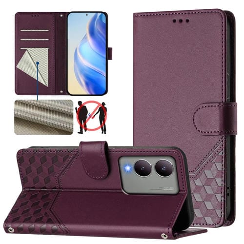 Funda de Cuero Rfid con Relieve En Panal Global para Vivo Y17S (Violeta)