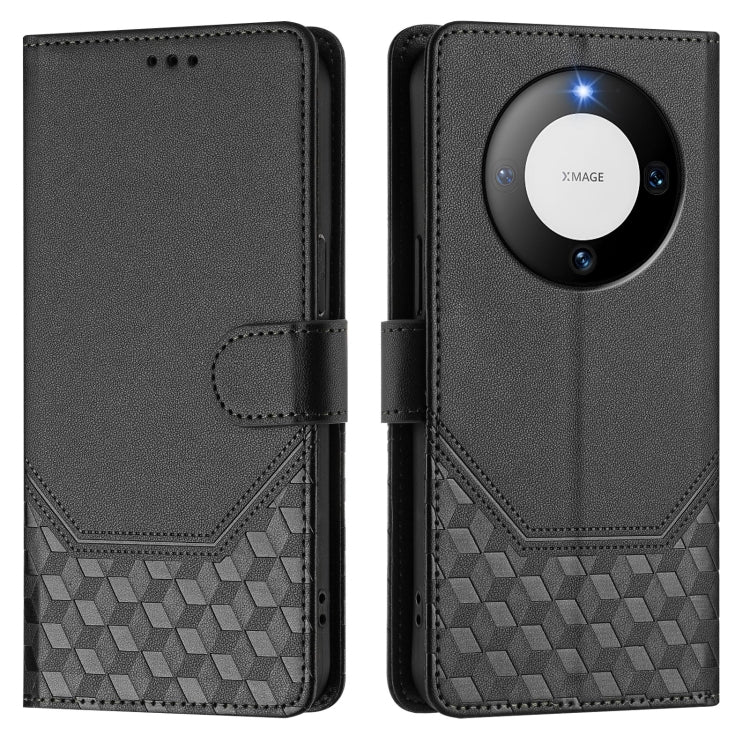 Funda de Cuero Rfid con Relieve en Panal para Huawei Mate 60 Pro y Mate 60 Pro+ (Negra)