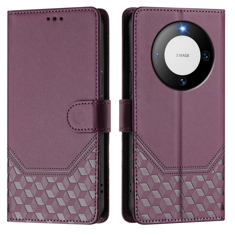 Funda de Cuero Rfid con Relieve en Panal para Huawei Mate 60 Pro y Mate 60 Pro+ (Violeta)