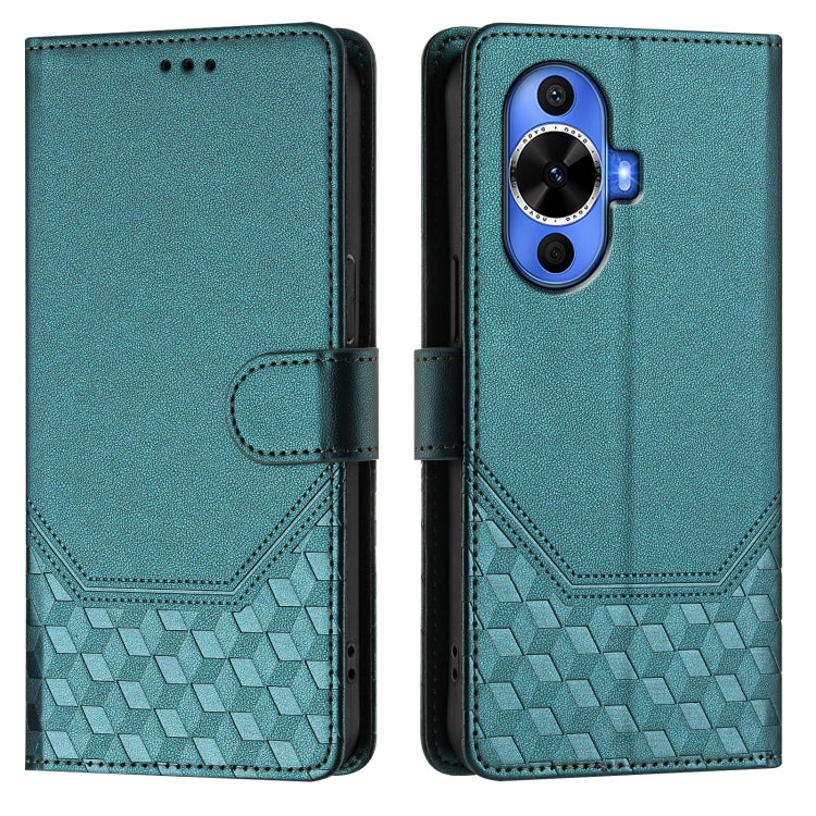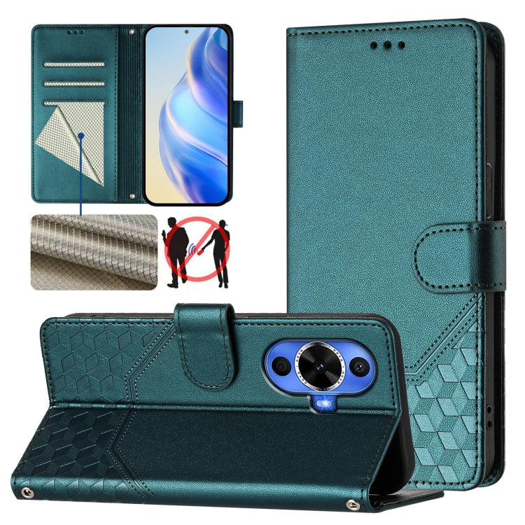 Funda de Cuero Rfid con Relieve en Panal para Huawei Nova 12S 4G (Verde Pavo Real)