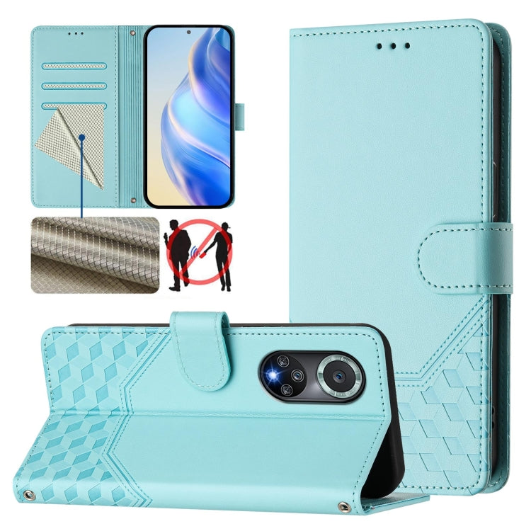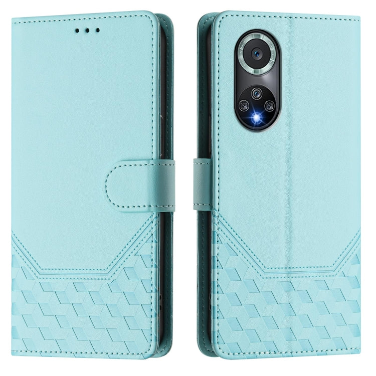 Funda de Cuero Rfid con Relieve en Panal para Huawei Nova 9 Pro y Honor 50 Pro (Verde Menta)