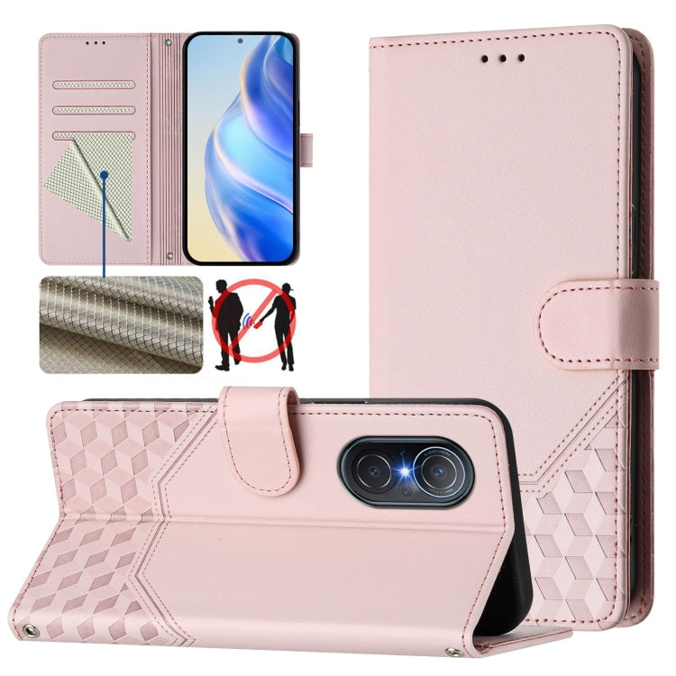 Funda de Cuero Rfid con Relieve en Panal para Huawei Nova 9 Se y Honor 50 Se (Rosa)