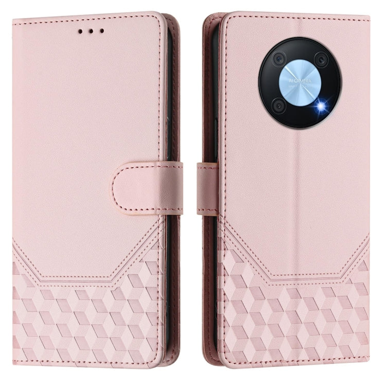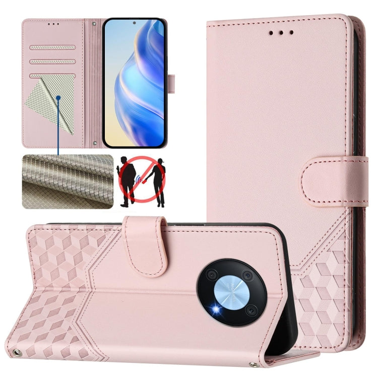Funda de Cuero Rfid con Relieve en Panal para Huawei Nova Y90 (Rosa)