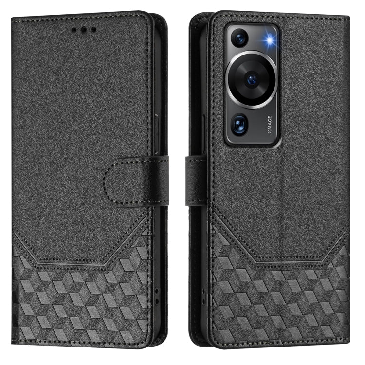 Funda de Cuero Rfid con Relieve en Panal para Huawei P60 y P60 Pro (Negra)